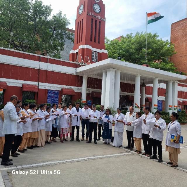 Lok Nayak Hospital in the colour Orange on 17th Sept. 2023 on occasion of World Patient Safety day